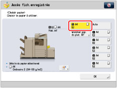 Il est possible d'afficher les icônes correspondant au type de papier chargé dans les cassettes sur les écrans de sélection du papier, à condition d'avoir défini ces informations au préalable sur la machine. (Voir "Mémorisation/modification des types de papier personnalisés".)