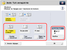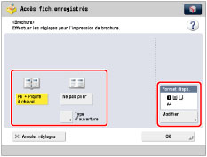 [Lecture brochure] ne peut être sélectionné que pour les formats papier suivants : A4, A4R, A5 ou A5R.