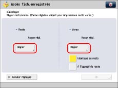 - .Les valeurs pour le verso peuvent être réglées automatiquement en sélectionnant [Identique au recto] ou [A l'opposé du recto].