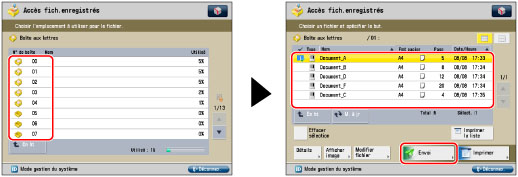 Si le destinataire sélectionné correspond à une adresse de groupe contenant une boîte aux lettres, le fichier en cours d'envoi ne sera pas envoyé vers (et mémorisé dans) cette boîte aux lettres.