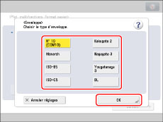 Le format des enveloppes spécifié doit être identique à celui des enveloppes chargées dans le plateau multifonctions.