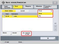 Dérouler la liste → sélectionner [Envoi] → appuyer sur [Imprimer la liste].