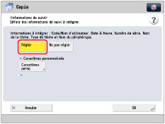Les informations telles que N°/Nom d'utilisateur, date/heure et nom du périphérique sont intégrées.