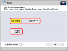 Spécifier les informations à intégrer → appuyer sur [Régler code TL].