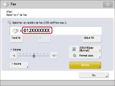S'assurer que l'on a entendu la tonalité avant de saisir le numéro. Si l'on saisit le numéro de fax sans attendre la tonalité, on risque de ne pas pouvoir établir la communication ou de saisir un numéro incorrect.