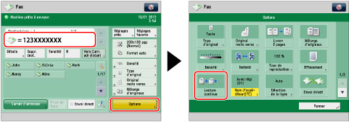 Pour lire des originaux recto et recto verso et les mémoriser en tant que documents recto verso, il convient de les répartir en lots d'originaux recto et recto verso. Par exemple, si le premier lot contient des originaux recto verso, activer le mode [Original recto verso]. Ensuite, le mode [Original recto verso] doit être sélectionné ou annulé manuellement pour chaque lot d'originaux lus.