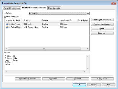 Il est impossible d'accéder au carnet d'adresses ou de le modifier sans disposer de droits d'accès au dossier cible du carnet d'adresses. Le cas échéant, se connecter en tant qu'utilisateur disposant des droits d'accès au dossier, ou cliquer sur [Spécifier un dossier] dans l'onglet [Modifier le carnet d'adresses], puis modifier le dossier cible du carnet d'adresses vers un dossier sur lequel des droits d'accès en écriture sont disponibles (voir "Modification de la destination d'exportation du carnet d'adresses").