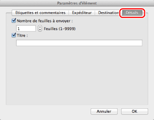 Si vous voulez indiquer le nombre de pages ou un titre, cliquez sur [Détails] → élément voulu et saisissez le contenu.