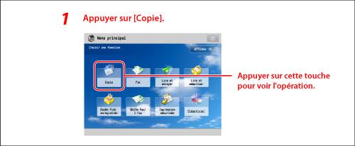 , comme indiqué ci-dessous. Lorsqu'un même écran contient plusieurs touches à utiliser, elles sont toutes encadrées. Sélectionner alors celle qui convient.