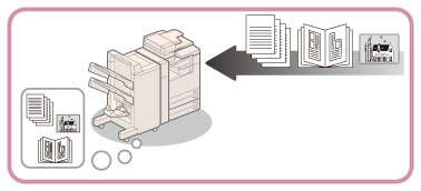 Impression de données lues à partir d'un original, suivie d'options de finition (agrafage, par exemple).