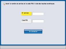 Saisir un numéro de service/code PIN ou un code administrateur système/code PIN système pour se connecter à l'interface utilisateur distante ou à une application MEAP (applications de connexion incluses).
