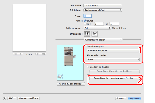 Les paramètres disponibles peuvent varier en fonction du système d'exploitation, ainsi que du type et de la version du pilote d'imprimante.