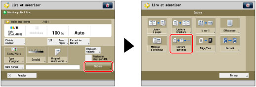 Pour lire des originaux recto et recto verso et les mémoriser en tant que documents recto verso, il convient de les répartir en lots d'originaux recto et recto verso. Par exemple, si le premier lot contient des originaux recto verso, activer le mode [Original recto verso]. Ensuite, le mode [Original recto verso] doit être sélectionné ou annulé manuellement pour chaque lot d'originaux lus.