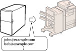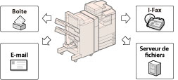 L'envoi aisé de documents lus à un ou plusieurs destinataires par e-mail ou I-Fax développe l'efficacité de l'échange de documents dans un environnement de travail. La possibilité d'envoyer des documents sur des serveurs de fichiers FTP, SMB et WebDAV permet également d'utiliser la numérisation (lecture) pour faciliter l'accès aux données et leur gestion.