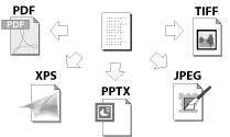 De nombreux formats de fichier sont autorisés pour l'envoi, y compris les formats PDF, XPS, OOXML(pptx), JPEG et TIFF. Ainsi, les documents peuvent être envoyés de différentes manières selon leur nature et selon l'environnement de traitement documentaire du destinataire.