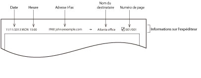 Si la machine est réglée pour que ces informations soient imprimées sur l'en-tête des documents envoyés, et si certains éléments n'ont pas été enregistrés, seuls les éléments enregistrés et le nombre total de pages s'impriment sur l'en-tête.