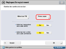 Les listes peuvent uniquement être imprimées si du papier A3, A4 ou A4R (ordinaire, recyclé, fin ou couleur) est chargé dans une cassette définie sur "Oui" sous [Autre] de [Activer/désactiver choix auto cassette] sous [Réglages de fonction] (Réglages/Enregistrement). Cependant, si [Tenir cpte de Type papier] pour [Copie] est réglé sur "Oui" sous [Activer/désactiver choix auto cassette], il est impossible d'imprimer à partir d'une cassette pour laquelle du papier couleur est indiqué. (Voir "Activation de la sélection automatique de la cassette".)
