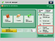 Il est possible de mémoriser des touches de raccourci à afficher à l'écran d'envoi. Deux touches souhaitées peuvent être mémorisées dans [Options].