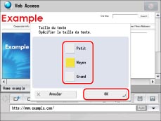 Les choix possibles sont [Petit], [Moyen] et [Grand]. La taille de texte par défaut est "Moyen".