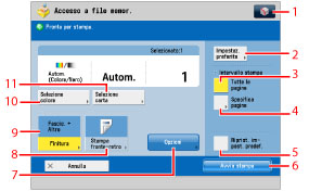 Utilizzare questo tasto per annullare tutte le impostazioni. (La macchina ripristina le impostazioni standard di Accesso a file memorizzati.) |