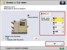 Per maggiori informazioni sui tipi di carta, vedere "Carta/supporti utilizzabili".