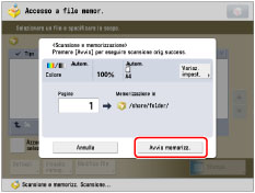 Se al termine della scansione dell'ultimo gruppo di originali viene visualizzata la seguente schermata, selezionare [Avvio memorizz.].