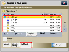 Selezionare la posizione di memorizzazione desiderata → selezionare il livello della cartella desiderata → premere [Modifica file].