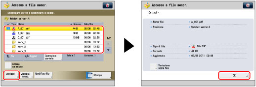 Selezionare il file desiderato → premere [Dettagli] → [OK].
