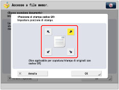 Prima di impostare questa funzione, l'amministratore deve impostare l'utilizzo del codice QR per il modo Blocco scansione documento. (Vedere "Selezione del codice per il blocco scansione documento (codice TL/codice QR)".)
