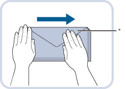 Piegare il lembo prima di caricare la busta nel vassoio multiuso, come illustrato.