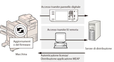 È possibile aggiornare il firmware della macchina alla versione più recente utilizzando la funzione "Registrazione/Aggiornamento software". Questa funzione può essere utilizzata sia dal pannello digitale sia dal computer (IU remota).