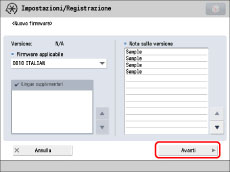 È possibile verificare il nuovo firmware applicabile alla macchina e indicare le impostazioni di distribuzione.