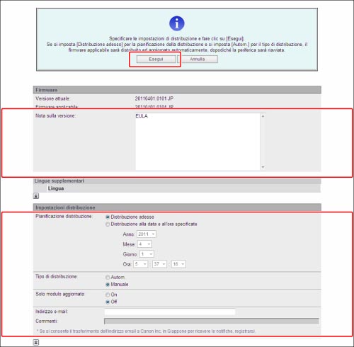 [Distribuzione adesso]: scarica il firmware dopo aver indicato l’impostazione di distribuzione.