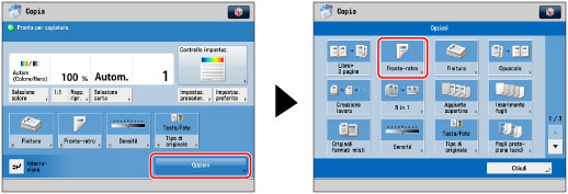 2 lati], seguire le istruzioni visualizzate sulla schermata per eseguire la scansione di ciascun lato degli originali.Se si intende posizionare l'originale fronte-retro sul vetro di lettura per copiare nel modo [2 lati