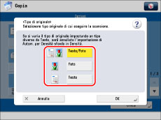 Se il modo Foto in Copia nelle Impostazioni funzione (dalla schermata Impostazioni/Registrazione) è impostato su 'On', è possibile selezionare [Immagine stampata]. (Vedere "Copia con il modo Immagine stampata".)