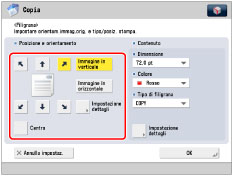 Se si imposta per due tra i modi [Numerazione pagine], [Numerazione serie] o [Stampa data] la stampa alla stessa posizione, viene visualizzato un messaggio che chiede conferma quando si preme