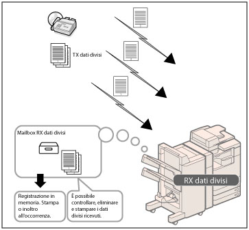 È possibile controllare lo stato dei dati divisi e lo spazio disponibile nella Mailbox RX dati divisi.