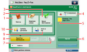Selezionare questo tasto per impostare utili funzioni di invio quali ad esempio l'invio contemporaneo di originali di diverso formato o l'invio di originali fronte-retro.