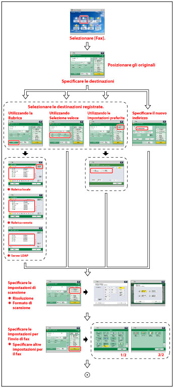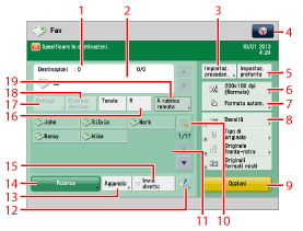 Premere questo tasto per impostare utili funzioni fax quali ad esempio l'invio contemporaneo di originali di diverso formato o l'invio di originali fronte-retro.