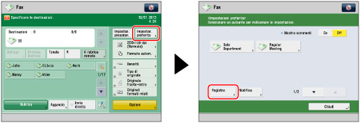 Premere [Fax] → specificare la destinazione e le impostazioni di invio da registrare.