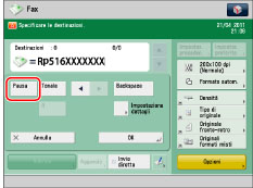 Premere [Pausa] dopo aver immesso il numero di accesso alla linea esterna ('R' nell'esempio riportato in precedenza) e prima di immettere il numero di fax.