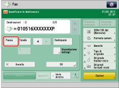 Digitare il numero di fax internazionale → selezionare [Pausa].