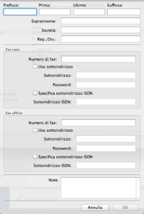 Occorre specificare un nome ([Primo] o [Ultimo]) e un numero fax ([Fax casa] o [Fax ufficio]).