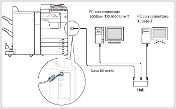 Se si utilizza un ambiente misto 10Base-T/100Base-TX/1000Base-T le periferiche sulla rete (hub, router, ecc.) devono supportare tale ambiente. Per ulteriori informazioni rivolgersi a un rivenditore autorizzato Canon.