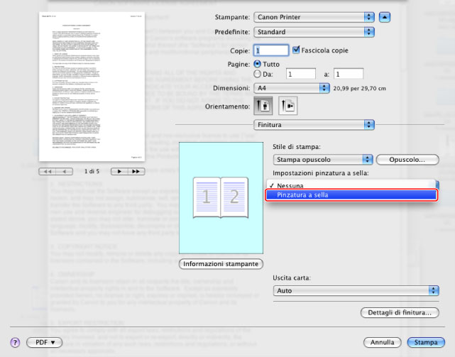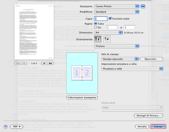 Stampa di un opuscolo (Mac)
