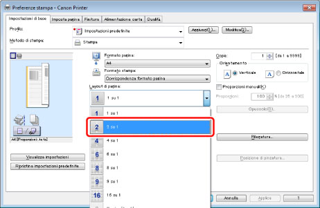 Selezionare [2 su 1] da [Layout di pagina].