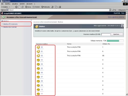Fare clic su [Accesso a file ricevuti/memorizzati] → [Mailbox RX memoria] → [Mailbox RX memoria].