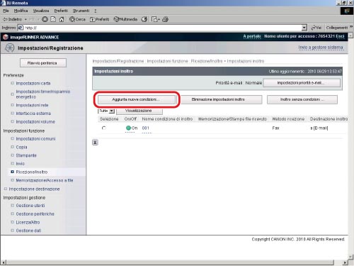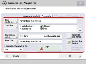 Registrare le impostazioni di inoltro mediante [Aggiunta nuove condizioni].