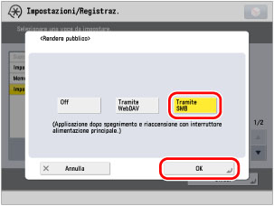 Per impostare [Utilizzo server SMB] su 'On', attenersi alla procedura riportata di seguito.