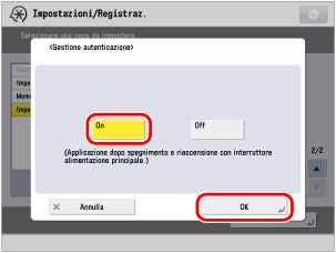 Per impostare [Gestione autenticazione] su 'On', attenersi alla procedura riportata di seguito.